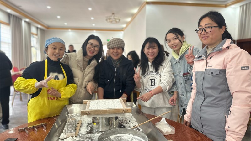 首先,大家前往了余姚梁弄鎮(zhèn),親身參與了地方特色美食——梁弄大糕的制作,深深沉浸在傳統(tǒng)美食帶來的愉悅?cè)の吨小>o接著,大家來到九庭山莊,在裊裊炊煙中共同動(dòng)手制作了柴火飯、一起包餃子,在享受美味農(nóng)家午餐的同時(shí)深刻感受到了團(tuán)隊(duì)協(xié)作的力量。
